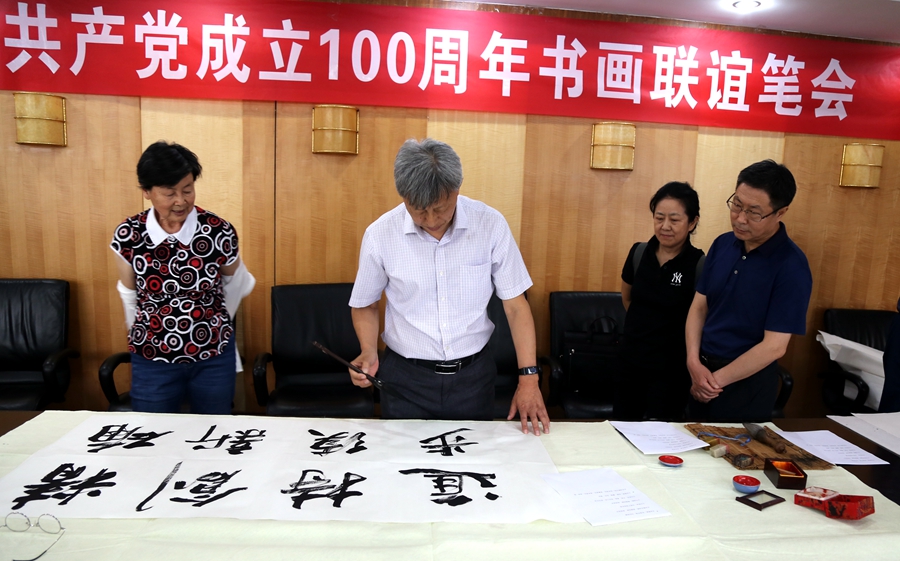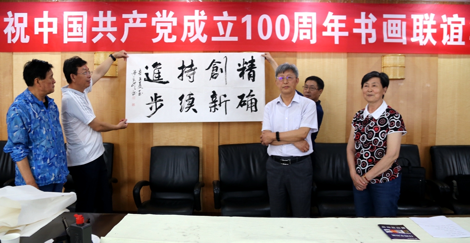 为庆祝中国共产党成立100周年,回顾党的奋斗历程,歌颂美好新时代,助力公司企业文化建设。6月24日,深圳市上茶楼文化发展有限公司、烟台市老年书画研究会、烟台市老干部志愿者协会共同举办“庆祝中国共产党成立100周年联谊书画笔会”。本次活动共有18位县处级退休老干部书画家参加。